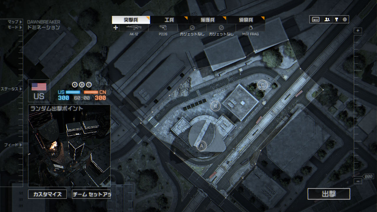 中央のオフィスビル内は狭い上に、配電盤を攻撃すると内部が暗くなることなどから、不意の遭遇戦が多い。