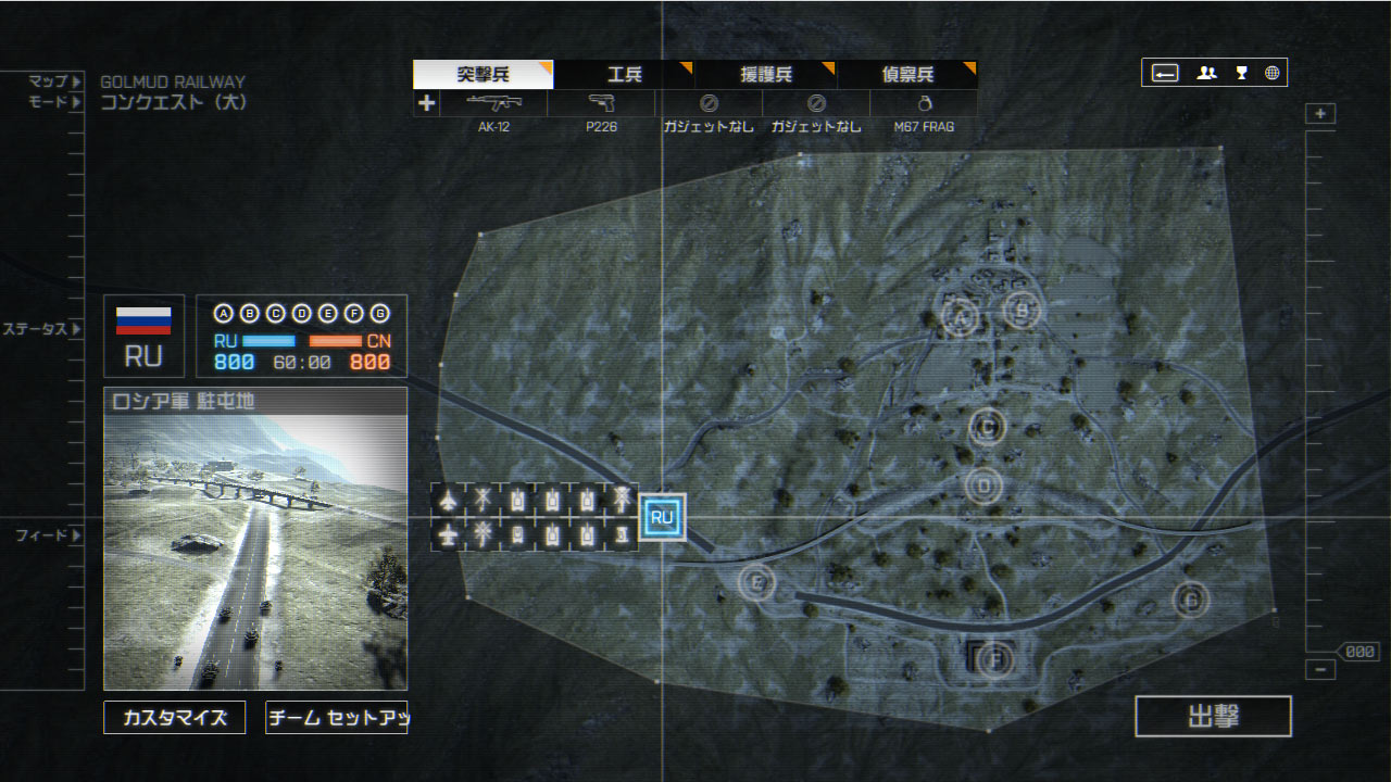 また、発売から現在に至るまでの様々なラウンドスタート時の状況を考慮した場合、ラウンドスタート時にF拠点(マップ最南の拠点)にチームのリソース(人数や兵器、特にMBT)を大きく割くのは愚策とされている。