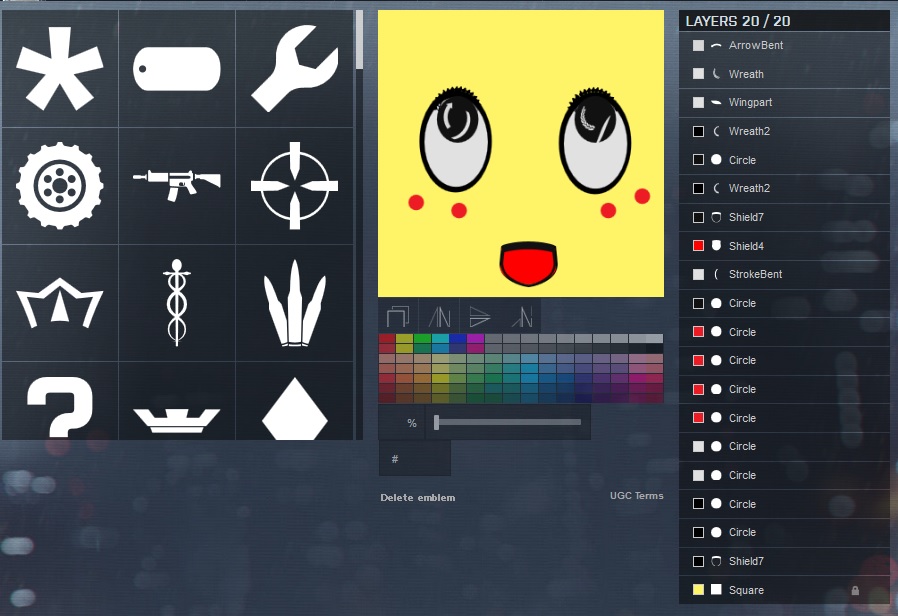 カスタマイズされたエンブレムを適用する事で、プレイヤー兵士のユニフォーム・銃・乗り物にあるデフォルトの国籍記章やマークの代わりに、自分のカスタムエンブレムがロードされて表示される。