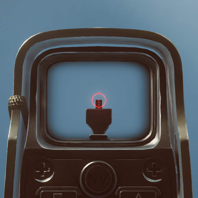 光学サイトの射線の一部をフロントサイトが遮るため、中距離以遠では敵が非常に見づらくなってしまう。