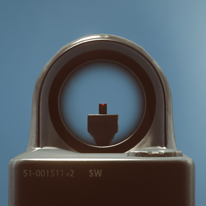 この銃の最大の欠点といえる点として、光学サイトを装着しても巨大なフロントサイトは排除されない。