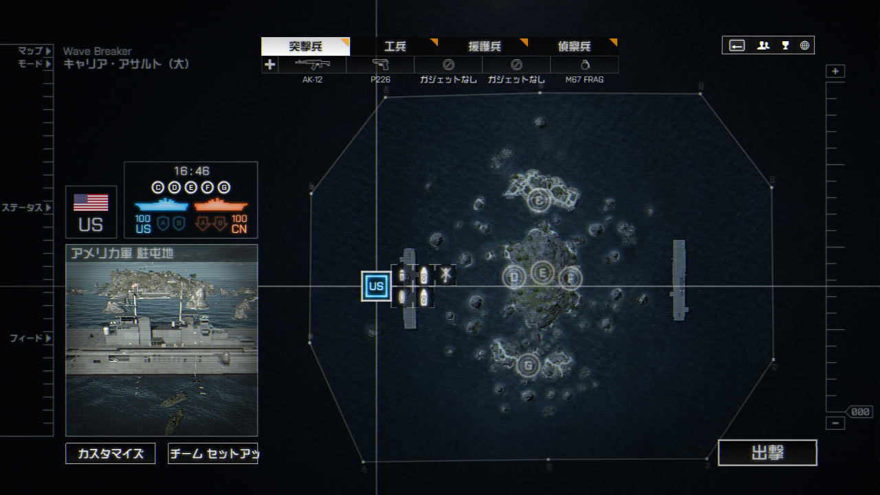 中央の潜水艦基地にある潜水艦の支柱を爆発物で破壊していくと、潜水艦が落下して周囲のレイアウトを変化させる。 基地内水路の4箇所の出入り口には水門があり、閉めると船での通行ができなくなる。