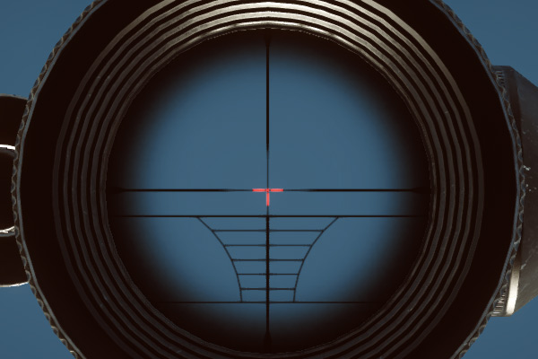 4倍ズームに弾道レティクルを採用。 中距離から長距離射撃における弾の落下を計算しやすくなっている。